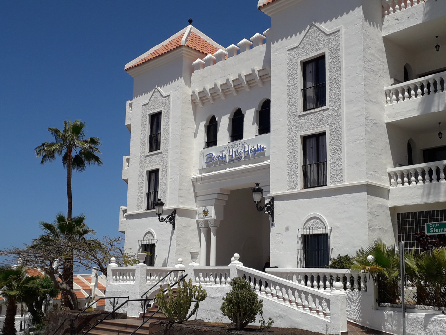 Ein weiteres schönes Panorama hat man ganz im Osten von Los Cristianos. Am Ende der Avenida Chayofita geht es, immer geradeaus, etwas steiler nach oben. Dort wird es richtig britisch oder amerikanisch: „Shakespeare Bar“, „The Heights Apartments“, „Hollywood Mirage“, „Beverly Hills“, „Royal Palm“, usw. Fast alle Apartments haben Meerblick, doch der Strand ist zu Fuß schon fast nicht mehr zu erreichen.