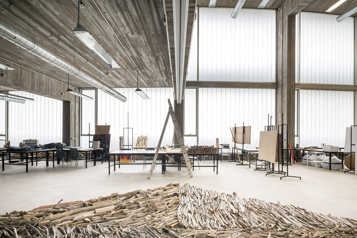 Die Nutzfläche des Gebäudes von 32260 m² verteilt sich über mehrere Ebenen, die nicht nur durch Treppen und Aufzüge verbunden sind, sondern auch durch stufenlosen Rampen, die überall einen barrierefreien Zugang ermöglichen. Im untersten Stockwerk befindet sich der Bereich der Bau- und Bildhauerwerkstätten. In der Etage 1 sind Fotostudios, Labors und kreative Unterrichtsräume, in der Etage 2 Werkstätten für künstlerische Gestaltung und Restaurierung. Die Etage 3 bietet Zeichen- und Designwerkstätten sowie Theorieräume und ein Labor für digitales Schaffen.