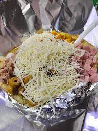 Die Kartoffel soll möglichst groß sein. Sie wird in der Alufolie gekocht oder im Backofen gebraten, dann aufgeschnitten und etwas zerdrückt. Der Schlüssel zu einem guten Papatazo liegt dann bei den Zutaten, nämlich Thunfisch, Oliven, Mais, Käse und Schinken. Die Soßen verleihen dieser karnevalistischen Delikatesse, zu der meist Aioli, Guacamole oder Tomatensauce gereicht werden, eine besondere Note. In der einfacheren Variante sind es vielleicht nur Ketchup und Mayonnaise. Sobald die Kartoffel fertig ist, wird sie in wieder Folie eingewickelt serviert und hält sich dadurch lange warm. Man nimmt sie mit oder isst sie gleich am Stand. Nicht nur, weil sie satt macht, ist sie so beliebt. Es kann auch nicht schaden, sie als Grundlage für die zahlreichen Gläschen Wein in der Nacht zu essen.