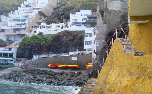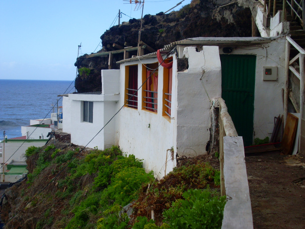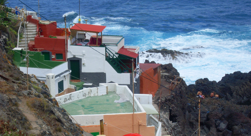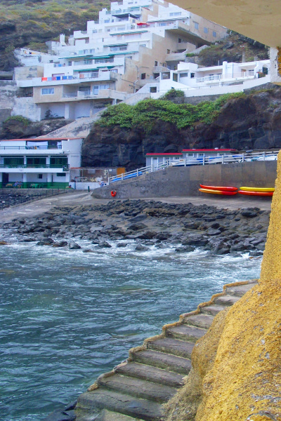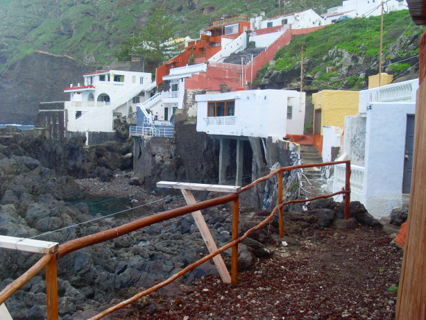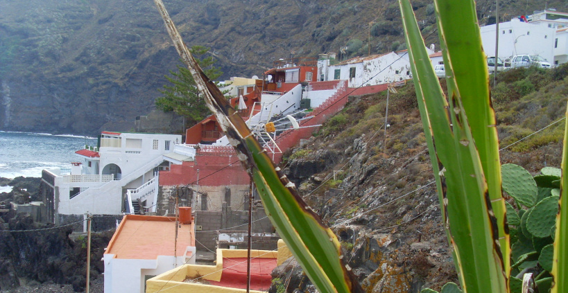 Der Abhang ist so steil, dass man kaum sieht, wo eigentlich die Häuser dort unten sind. Erst kurz bevor man unten ankommt sieht man die kleine Bucht, um die sich ein paar Häuser gruppieren. Die Menschen dort unten leben noch in einer Abgeschiedenheit, wie es sie selten auf Teneriffa gibt, vor sich das wilde Meer und hinter sich steile Felswände. 380 Höhenmeter trennen das Dorf vom Rest der Welt. Zum Glück gibt es Fernsehantennen.