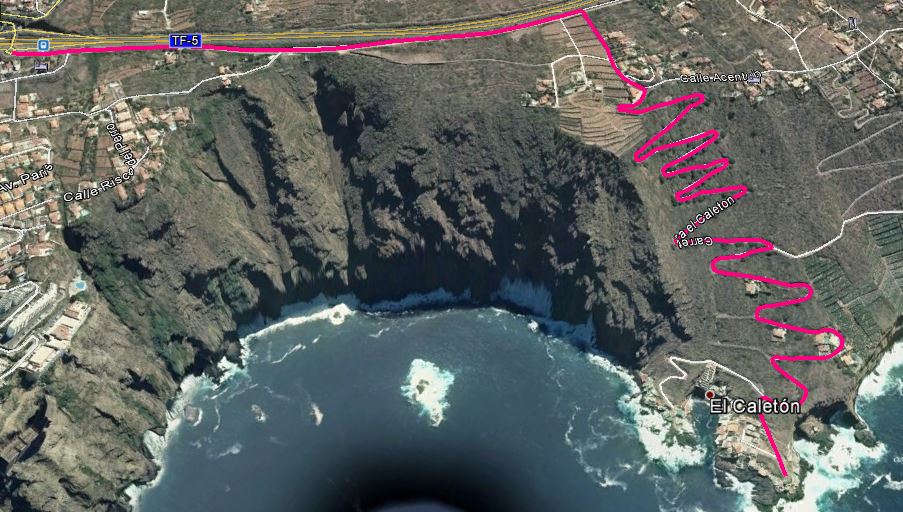 Autobahnausfahrt La Matanza, nach der Abzeigung Richtung El Sauzal verläuft unmittelbar neben der Autobahn eine Straße (Carretera vía de servicio). Von dieser zweigt nach ca. 1km rechts die schmale Calle Acentejo ab, es stehen einige Schilder da und man entdeckt auch „El Caletón“. Nach 300m muss man noch einmal rechts abbiegen, und dann geht es abwärts ins Abseits.