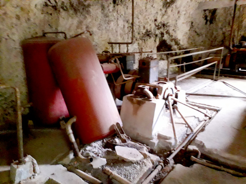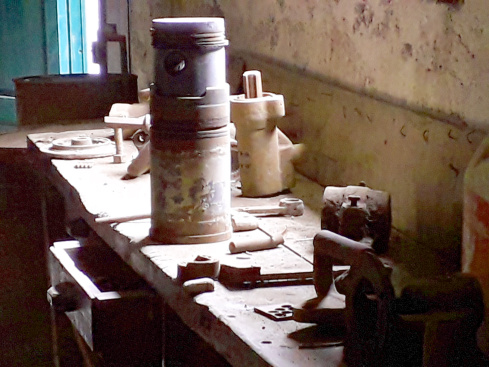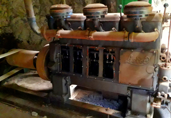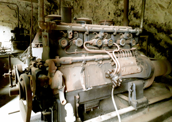 In der der Galería gegenüber liegenden Steilwand befindet sich das Maschinenhaus direkt unter einem überhängenden Felsen. Es ist unbedingt lohnend, dort hinauf zu klettern und einen Blick ins Innere zu werfen. Zu sehen ist ein monströser Dieselmotor und der Kompressor, mit dem Druckluft erzeugt wurde. Zahnräder, Werkzeug, Schrauben und eine komplette Werkbank, die so aussieht, als sei gestern dort noch gearbeitet worden – abgesehen von Rost und Staub. Man wundert sich, wie das alles mit Eseln und Pferden hier herauf kam.