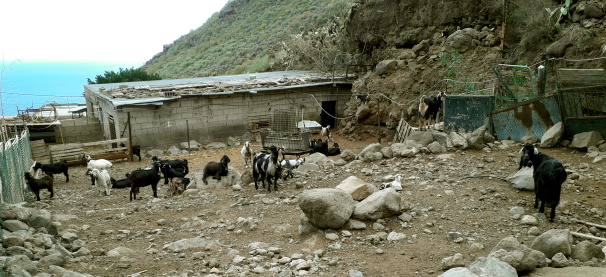 Man beginnt am bequemsten am Friedhof von Igueste de Candelaria, wo man das Auto abstellen kann. Dann geht man auf dem Sträßchen weiter, wo nach 200m der Asphalt endet, dort biegt man rechts auf einen Schotterweg ab in Richtung Berge. Nach weiteren 200m kommt man an einem großen Ziegenstall vorbei.
