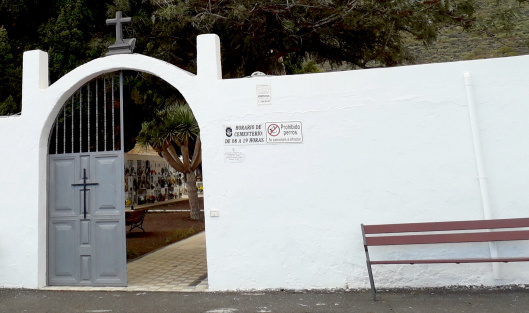 Anfahrt: Von der Hauptstraße, die ins Ortszentrum hinaufführt, biegt man kurz nach der Plaza Dimas Coello (ein Maler und Dichter aus diesem Ort) in den Camino Los Revolcaderos ab, der „cementerio“ ist ausgeschildert.
