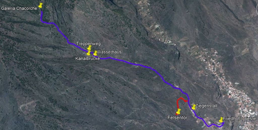 Die Berge oberhalb von Igueste de Candelaria sind einsam und verlassen. Nur selten gehen Wanderer in die tiefen Schluchten hinein. Mehrere Wasserkanäle verlaufen an den Hängen entlang und bringen das wertvolle Trinkwasser aus den Stollen in die Städte. Diese Wanderung verläuft ein Stück auf einem solchen Kanal und danach tief in die Schlucht von Chacorche hinein.