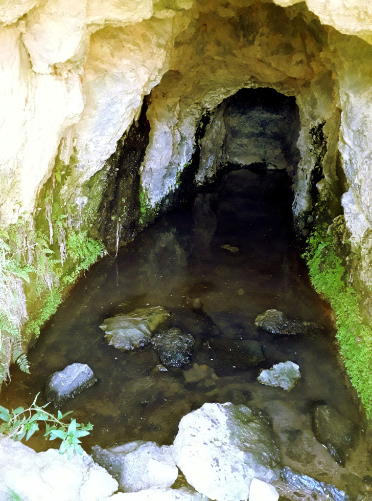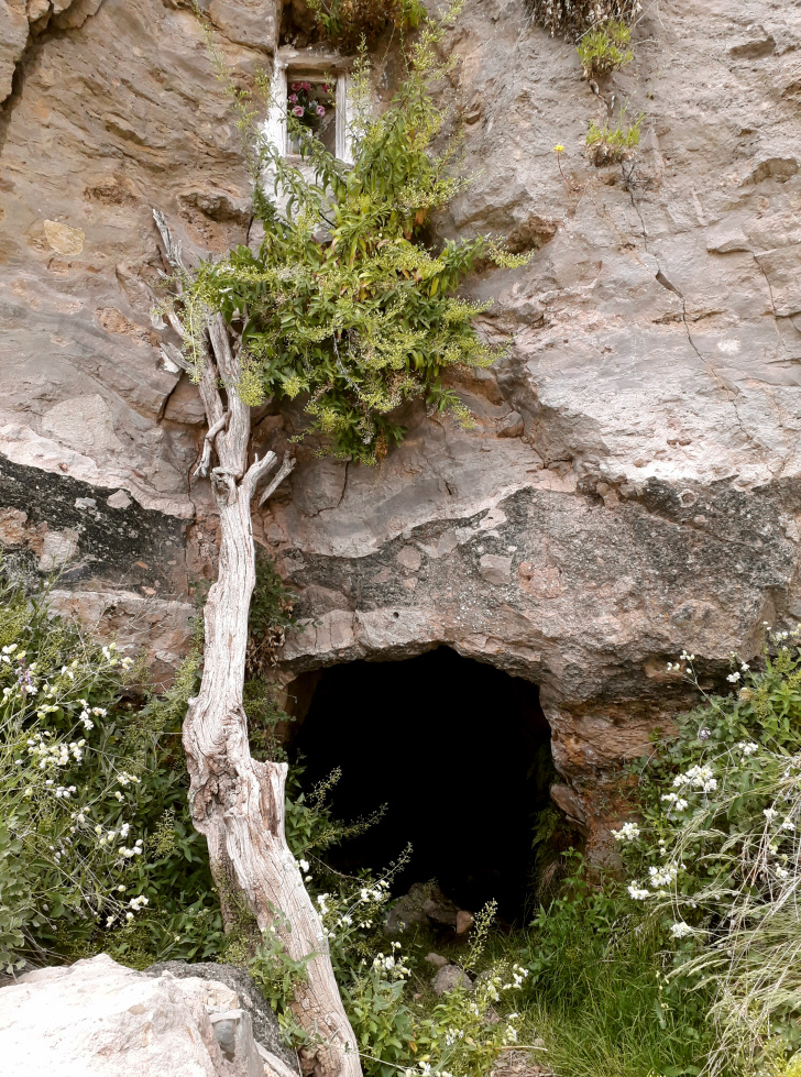 Weiter geht es dann auf der anderen Seite des Sattels, wo man sich einer großen Felswand nähert. Hier befindet sich in einer Höhle die Fuente de Cedro, eine tief in den Fels gehauene Wasserstelle, in der sich ganzjährig Wasser findet.