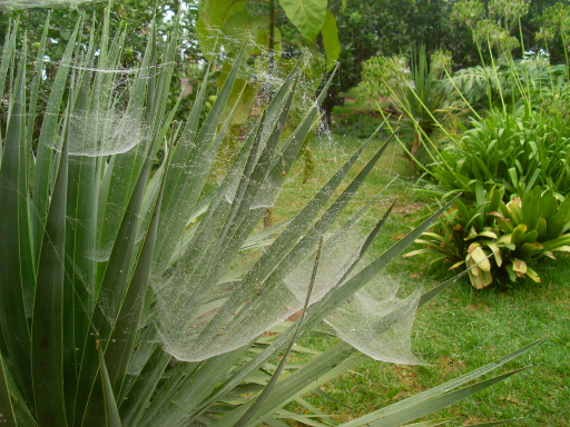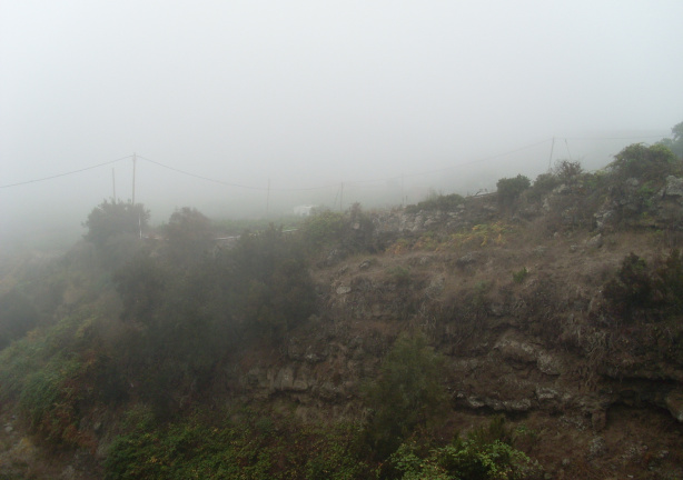 Doch oft ist das Wetter zweigeteilt. Entlang der gesamten Nordküste liegt eine dicke Nebelschicht, durch die die Sonne kaum durchkommt. Unterhalb von 600m Höhe ist alles grau, bei 20° bis 22° liegt die Luftfeuchtigkeit um die 90%. Die Sichtweite liegt unter 100m. In den Spinnweben sammeln sich Wassertröpfchen. An den Stränden der Nordküste ist blauer Himmel nicht zu sehen. Trotzdem ist der UV-Index sehr hoch, denn der Nebel ist dünn.