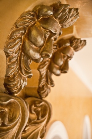 Innen betrachtet man an den Wänden zwölf Malereien von Meeres- und Küstenlandschaften mit romantischer Atmosphäre, an der Decke gibt es ein Himmelsgemälde.