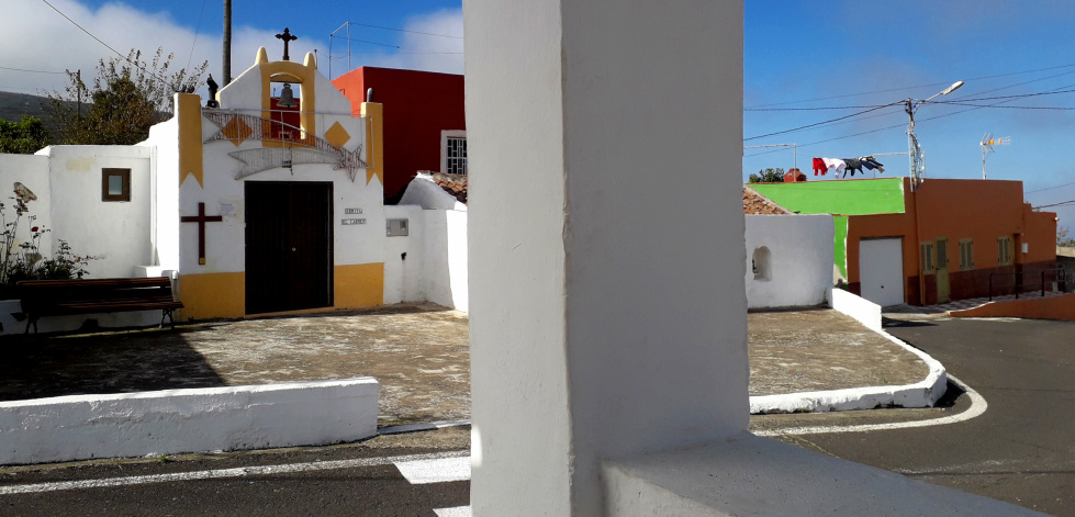 Für die große Runde geht man hier nach links unten, Beschreibung siehe unten. Für die kleine Runde geht man den ziemlich verwachsenen Weg nach oben, der bald auf einen Fahrweg mündet und dann zu einer asphaltierten Straße wird. Bergauf kommt man zu den ersten Häusern von Las Abiertas. Die Nutzung dieser Gegend begann mit den ersten Rodungen im 18. Jahrhundert. 1737 wird das Dorf mit 55 Einwohnern erwähnt, heute sind es etwas mehr als 200, die verstreut in einzelnen Häusergruppen leben. Ein richtiges Dorfzentrum gibt es hier nicht, aber immerhin die Kapelle El Carmen und gegenüber ein kleines Versammlungszentrum mit Festplatz. Das große Dorffest zu Ehren der Virgen del Carmen findet im Juli statt.