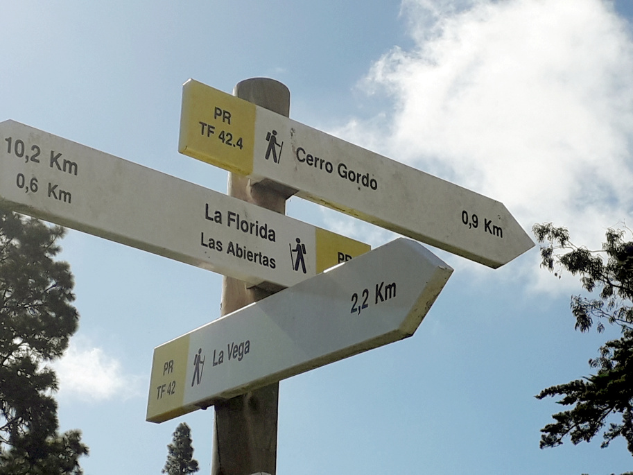 Nach 700m darf man eine Abzweigung (*) nach rechts nicht verpassen, die mit „Las Abiertas“ ausgeschildert ist. Es ist der offizielle Wanderweg PR TF-42.