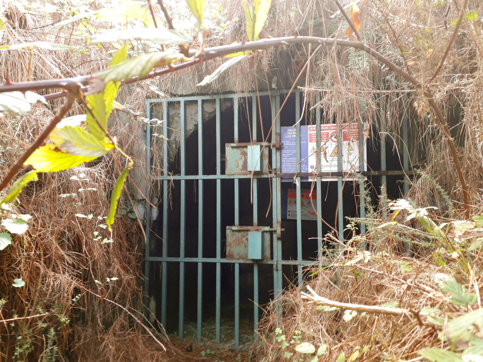 An dieser Stelle kann man aber auch einen keinen Abstecher nach links oben machen, wo man nach 300m zur Galería Hoya de los Pinos kommt. Der 2160m lange Stollen ist zugemauert, die Wassernutzung wurde eingestellt. Vor dem verwachsenen Stolleneingang steht noch die Ruine des ehemaligen Maschinenhauses. Man sieht auch noch ein paar verrostete Schienen.