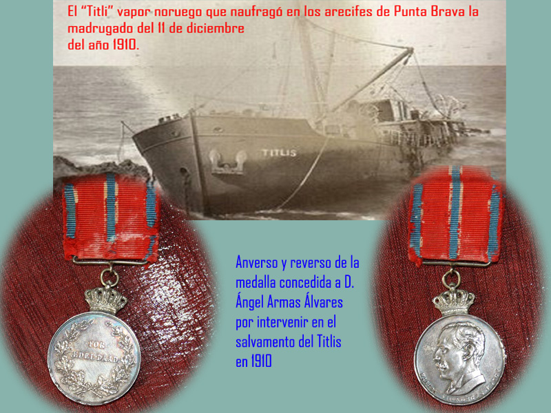 Die Befürchtungen waren nicht unbegründet. In den frühen Morgenstunden des 11. Dezember 1910 weckte ein durchdringender Lärm den verschlafenen Ort. Seine Bewohner spürten, dass in diesem Augenblick ein schicksalhaftes Ereignis passiert war. Es war fünf Uhr morgens an besagtem Tag, ein starker Wind und schwere See schlugen gegen die Küste. Die Sirene eines großen Schiffes, der „Titlis“, riss die Anwohner aus dem Schlaf. Die Felsen des „Veril de la Brava“ rissen ihm den Bauch auf bis zu den Eingeweiden. Ein Bauer, der durch das Dröhnen der Sirene des sterbenden Schiffes alarmiert wurde, lief, nachdem er sich dem Ort genähert und gesehen hatte, was passiert war, nach Puerto de la Cruz und alarmierte die örtlichen Behörden. Sechs Männer eilten zum Ort des Geschehens, darunter der Bürgermeister, der Richter und der Polizeikommissar.