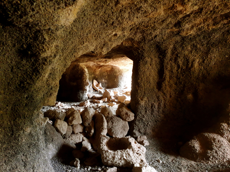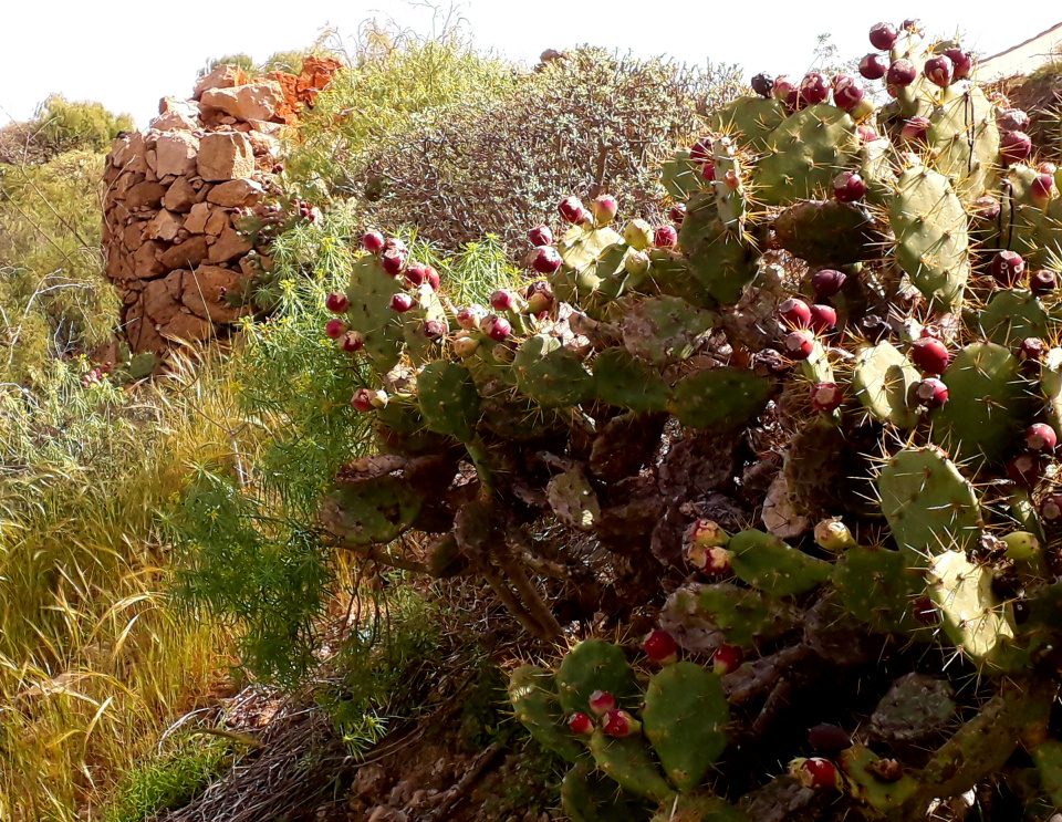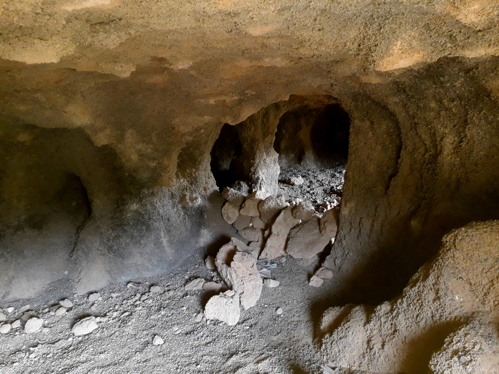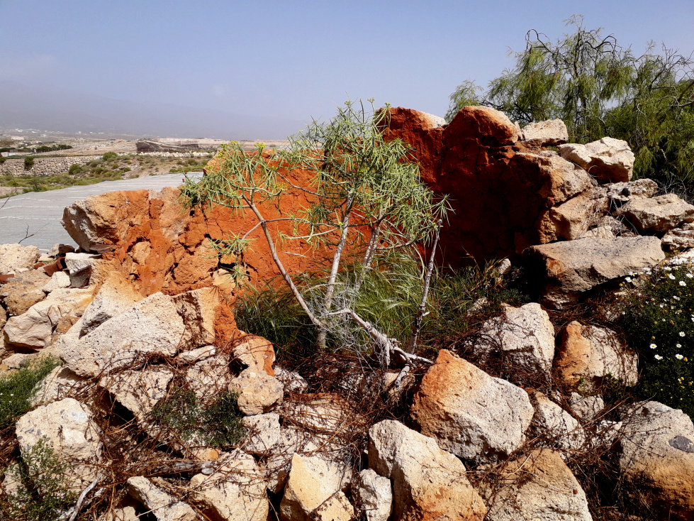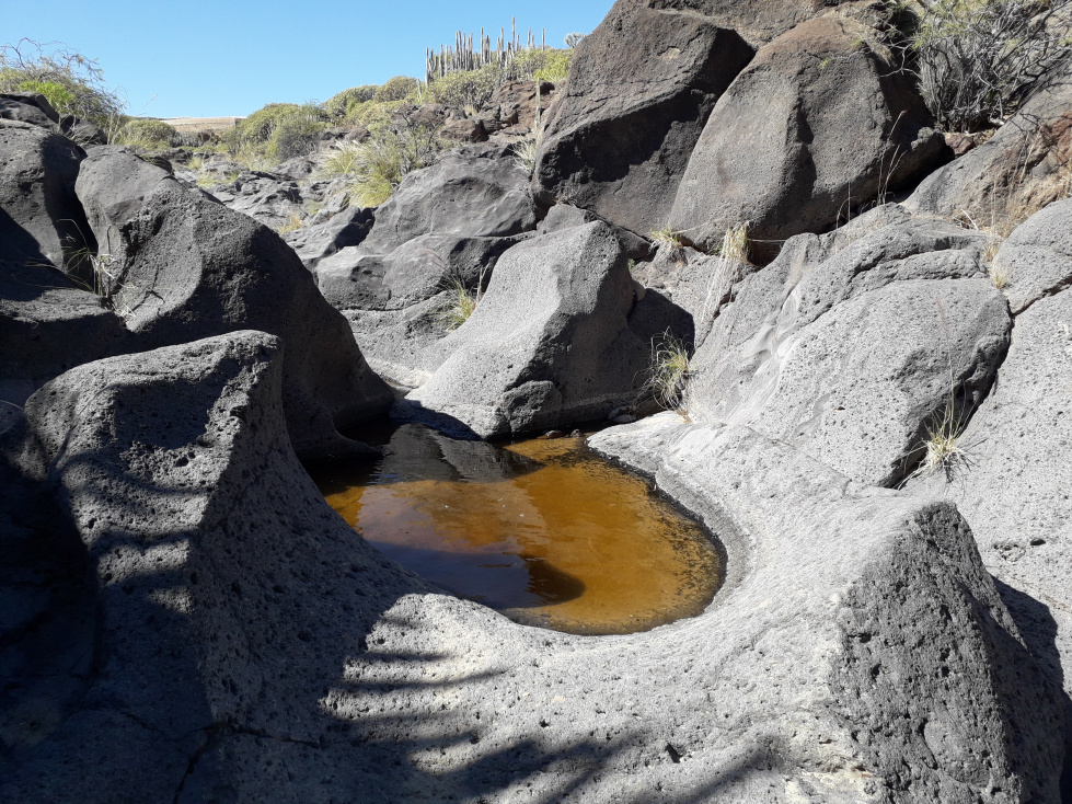 Es war die Wohnstätte der Familie Bartolo. Offenbar hat hier im Niemandsland früher doch jemand gewohnt und gearbeitet. Denn hinter den Ruinen entdeckt man einen alten Wasserkanal aus Jable-Gestein und ein paar Meter weiter einen großen Dreschplatz. Das bedeutet, dass hier früher einmal Getreide angebaut wurde und eine Familie davon leben konnte. Ganz erstaunlich!