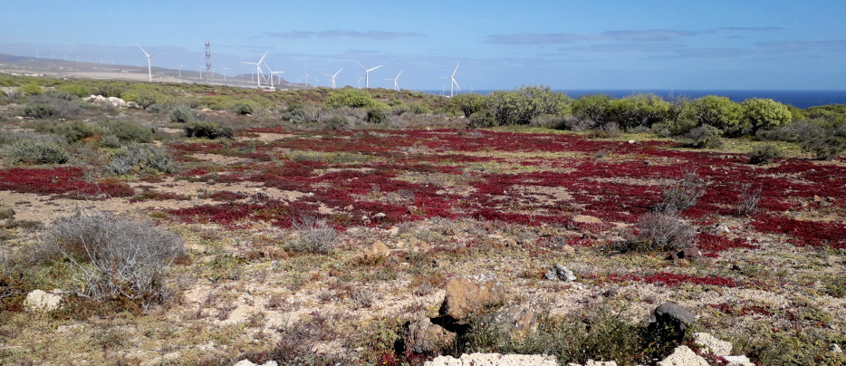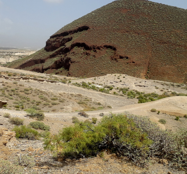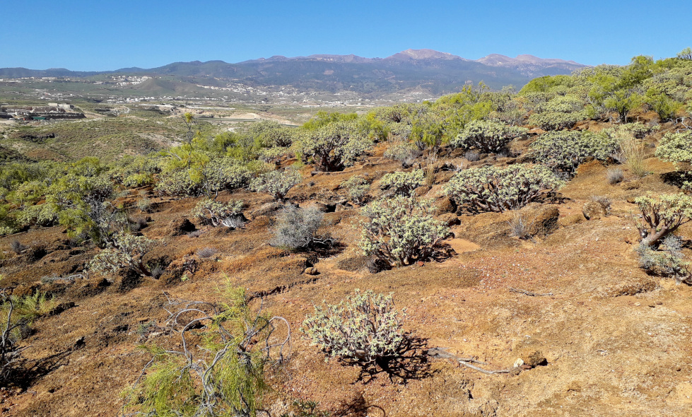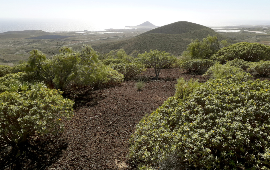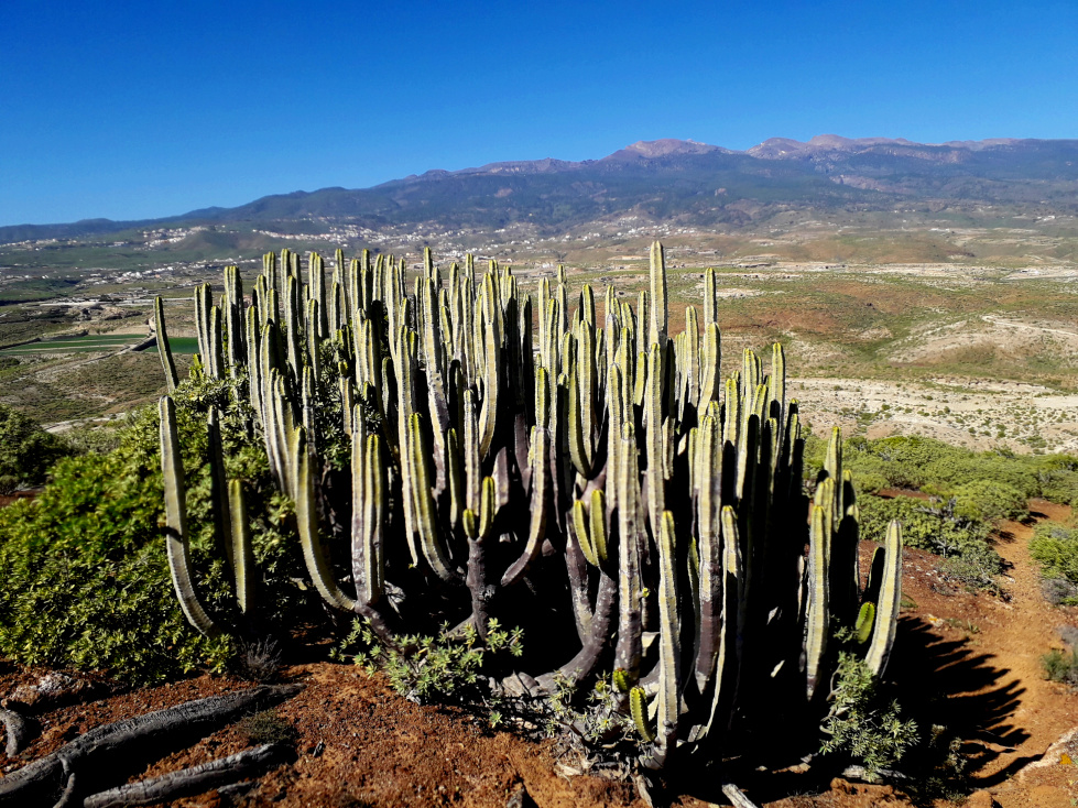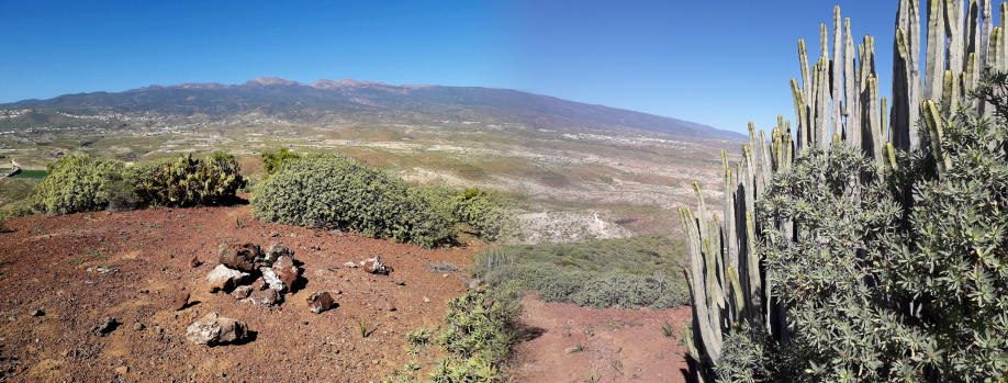 Je weiter man nach oben kommt, umso mehr öffnet sich das Panorama in alle Richtungen. Auf dem Gipfel hat man einen 360º-Rundblick. Zum Hafen von Granadilla, zur Montaña Roja von El Médano, zum Roque de Jama weit im Westen, oder hinauf zu den Bergen mit den Orten Granadilla und San Miguel de Abona. Sogar die Spitze des Teide schaut hinter den Bergflanken hervor.