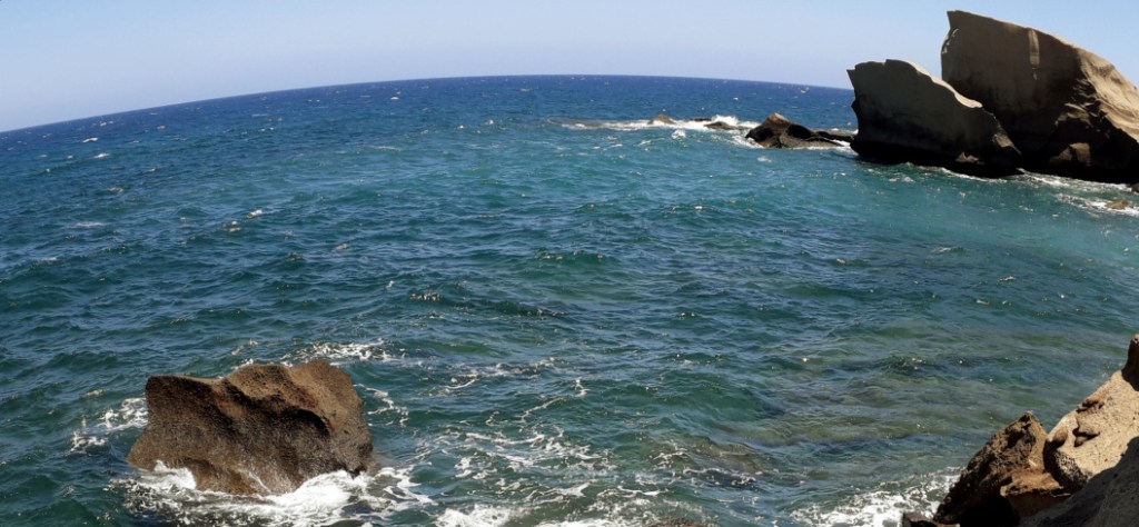 An diesem hervorragenden Aussichtspunkt überblickt man einen großen Teil der Küste und den kleinen Fischerhafen. Noch einmal Achtung: Der Rand des Steilhangs ist nicht gesichert und gefährlich! Abstand halten! Am 27. Juli 2024 sind hier einige Teile des Kliff abgebrochen. Blöcke von der Größe eines Autos sind ins Meer gestürzt. Ursache war vermutlich ein kleines Erdbeben.