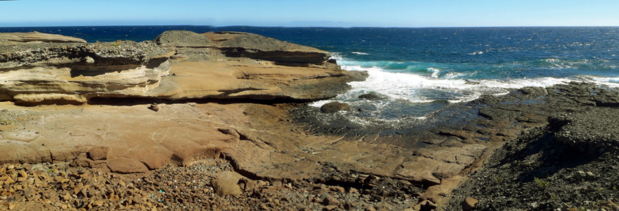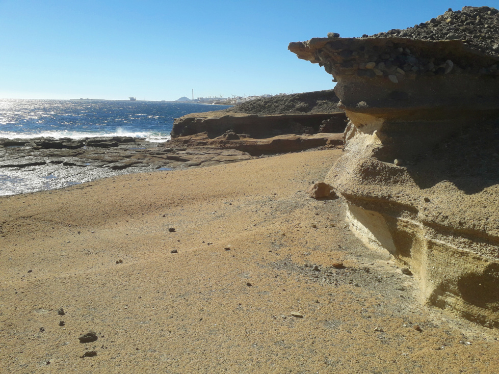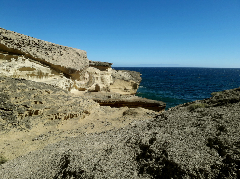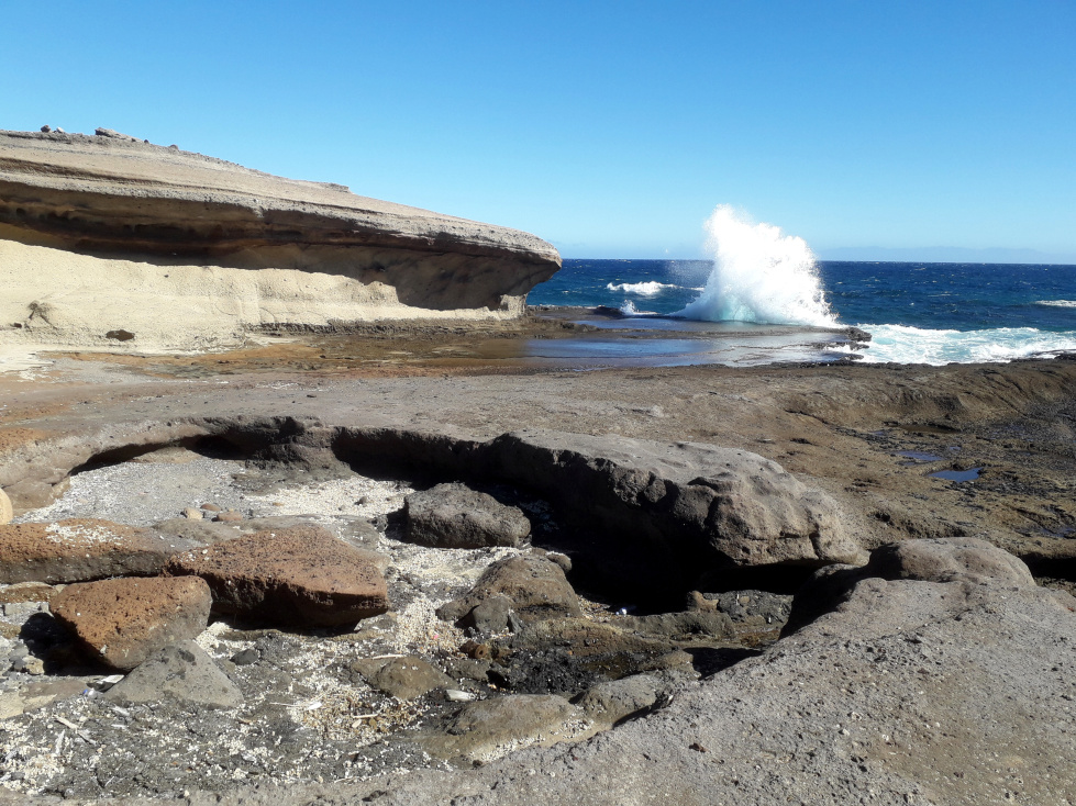 Vor Hunderttausenden von Jahren haben sich hier geologische Prozesse abgespielt, die man mit Recht als Hölle bezeichnen könnte. Heftige, pyroklastische Vulkanausbrüche schleuderten Aschewolken in die Luft, vermischt mit Gesteinsbrocken aller Art. Die abgelagerte Asche und und das lockere Material verhärtete sich im Laufe der Zeit und wurde zu festem Gestein. Das fließende Wasser schuf Schluchten und legte die unterschiedlichen Schichten wieder frei. So entstand eine bizarre Landschaft, in der die fast weißen Tuffgesteine vorherrschend sind, die hier als „Bandas del Sur“ oder „Piedra de Chasna“ bekannt sind und auf vielfältige Weise vom Menschen genutzt werden. An der Küste sind sie vom Wind glatt geschliffen worden und von den Wellen zerbrochen. So entstand eine einzigartige Landschaft, die es sonst auf Teneriffa nirgends gibt.
