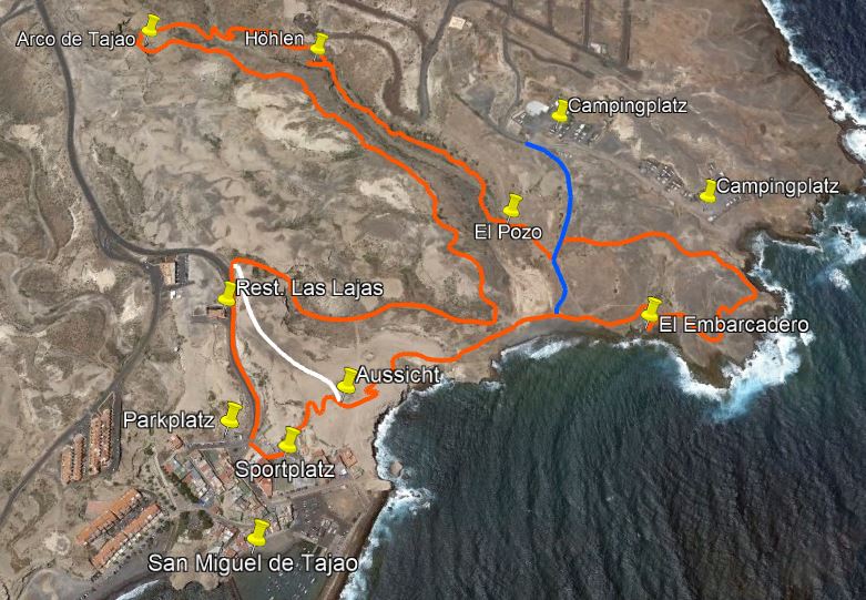 Ein von der Gemeinde Arico angelegten, etwa zwei Kilometer langer Rundweg führt an den wichtigen Punkten von geologischem und historischem Interesse vorbei. Die hier beschriebene Tour ergänzt diesen Weg noch etwas und beginnt direkt im Hafen von San Miguel de Tajao. Am Ende sind auch Alternativen beschrieben.
