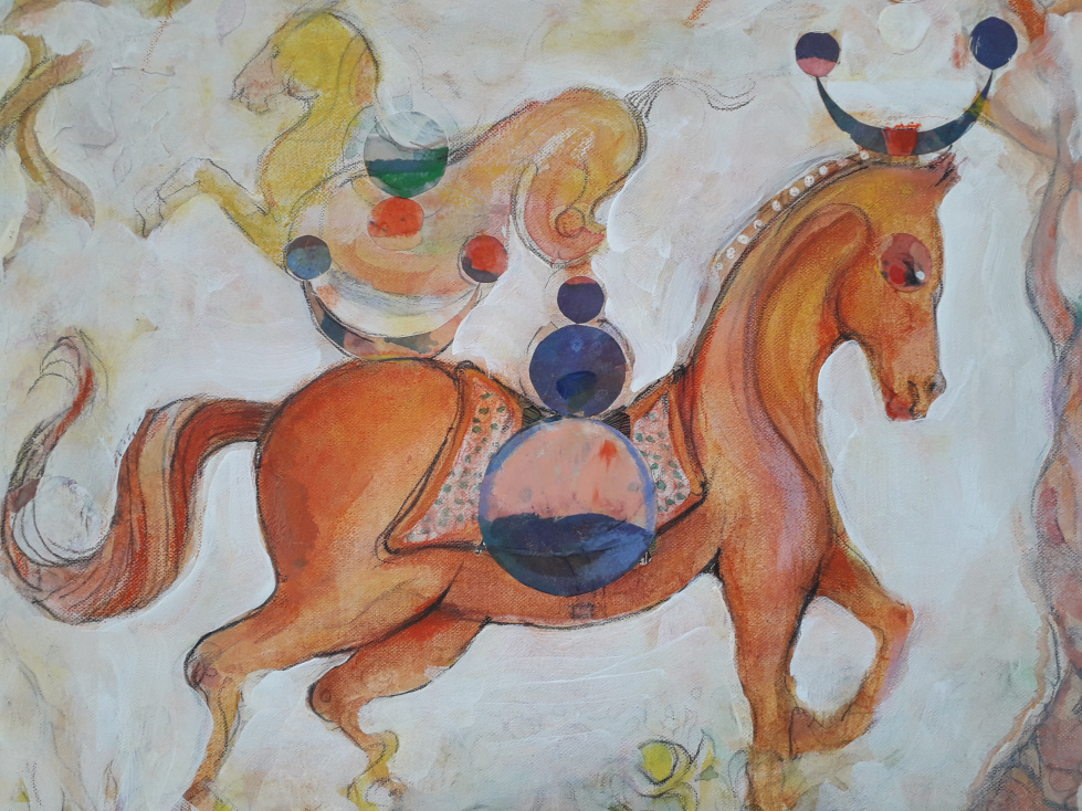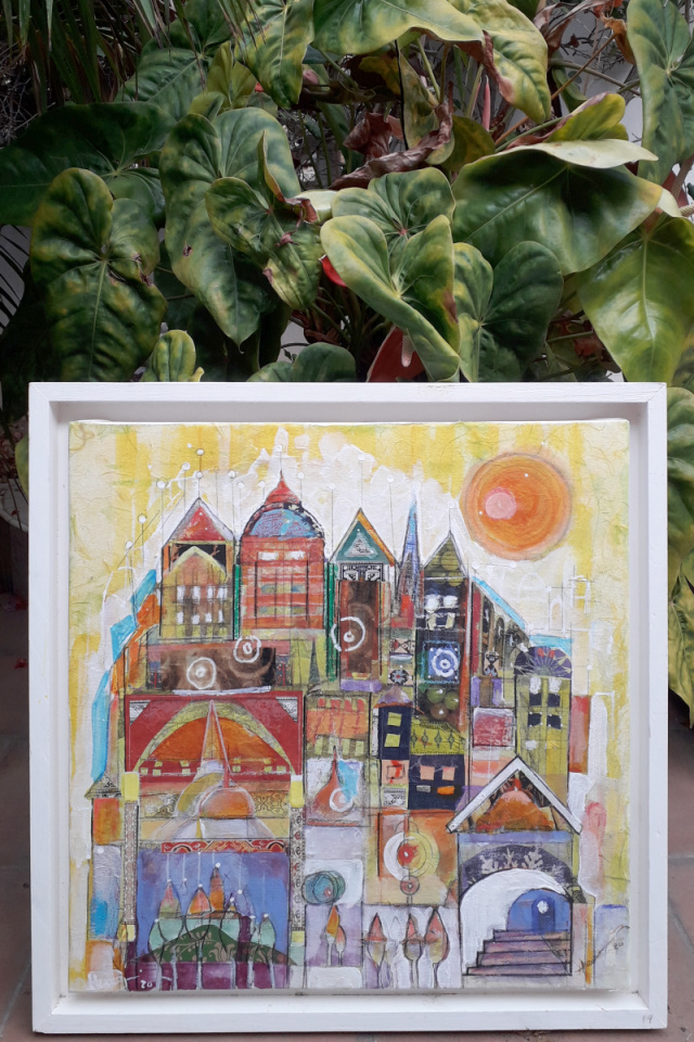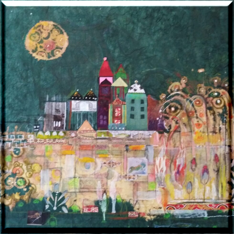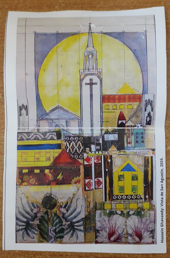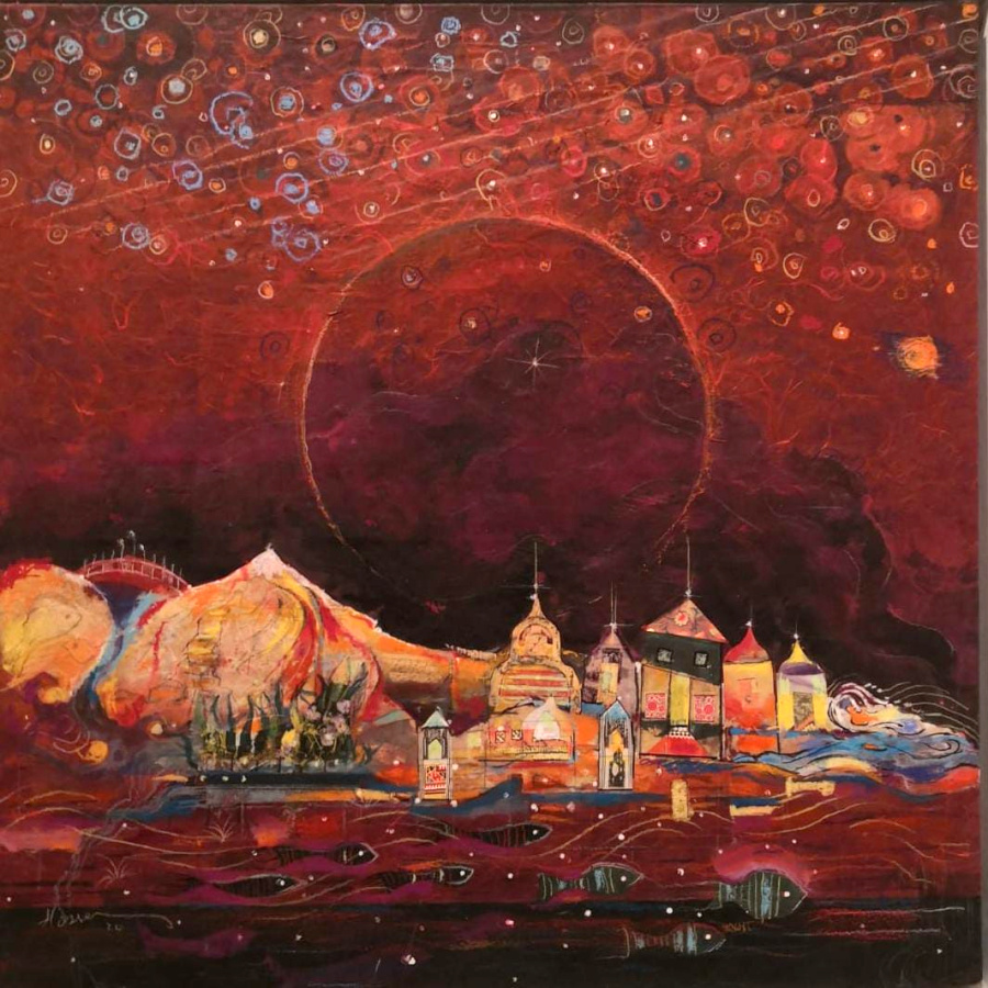 Hossein malt auf Leinwand oder Papier und hat keine Scheu vor üppigen Farben. Von seinen Bildern wird man magisch angezogen, und man muss hinschauen, genau hinschauen. Dann entdeckt man eine Fülle von Details, ausgeführt mit winzigen Pinselstrichen. Und dann entdeckt man erstaunt die vielen kleinen Elemente aus Papier, aufgeklebt und eingegliedert in die phantastische Welt aus 1001 Nacht. In jedem Fenster der Gebäude hängt ein anderer Vorhang, jeder Fisch im Wasser hat sein eigenes Gesicht.