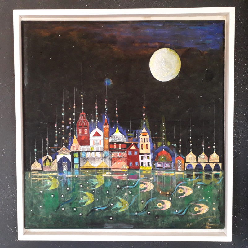 Städte und Häuser, deren Lichter sich im Wasser spiegeln, sind eines seiner Lieblingsmotive. Es sind Gebäude aus 1001 Nacht, so bunt wie die Häuser auf Teneriffa, und so geheimnisvoll wie in einem Märchen.
