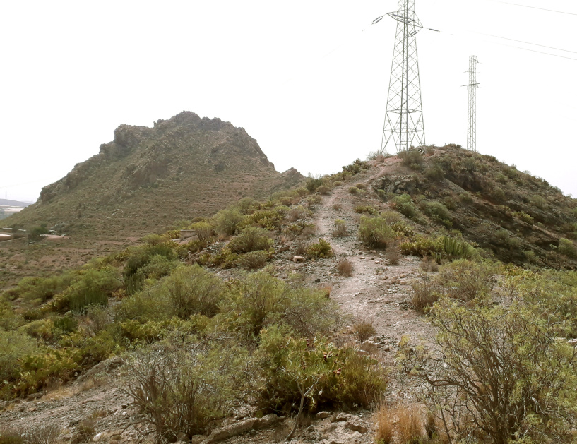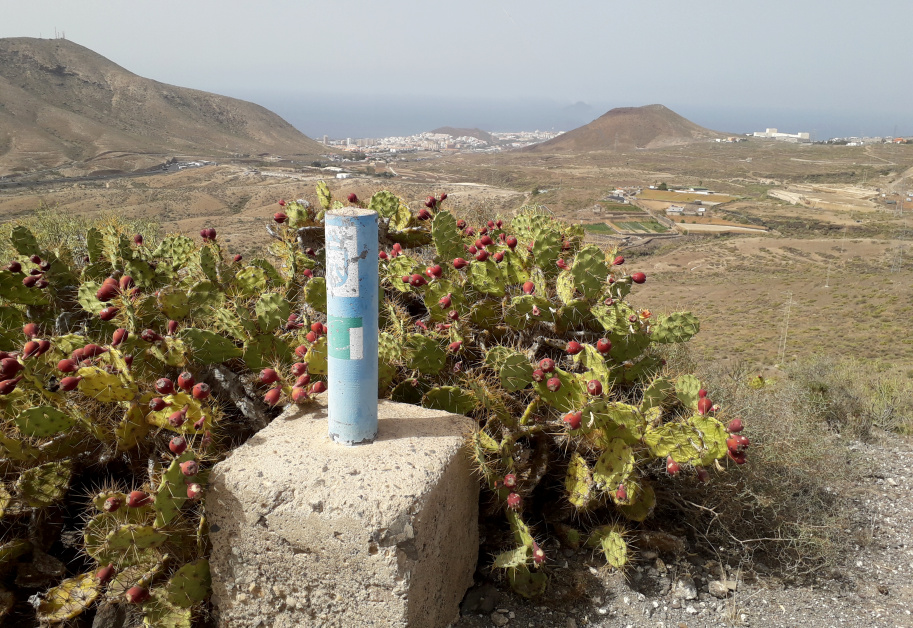 Man geht nach rechts abwärts auf dem Camino Charco Redondo und nach 170 m halb links auf einen gut erkennbaren Wanderpfad. Er verläuft bequem und fast eben am Hang entlang. Nach rechts hat man einen Blick auf den berühmten Hausberg von Arona, den Conde, und dahinter in der Ferne auf den Roque Imoque, ebenfalls ein markanter Brocken in der Gegend (siehe Wanderung Rund um den Berg).