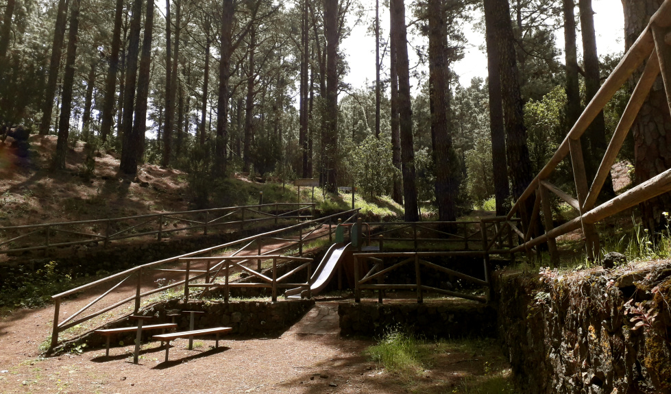 Neben der Eremitage befindet sich ein großer Platz mit Sitzgelegenheiten und einem Kinderspielplatz, alles unter großen Exemplaren der Kanarischen Kiefer. Ein Stück weiter oben befindet sich die Casa Forestal von Garachico. Dort überquert eine Holzbrücke die Hauptstraße.