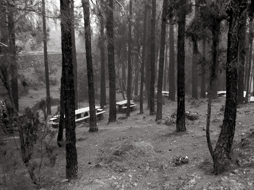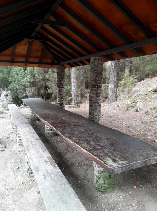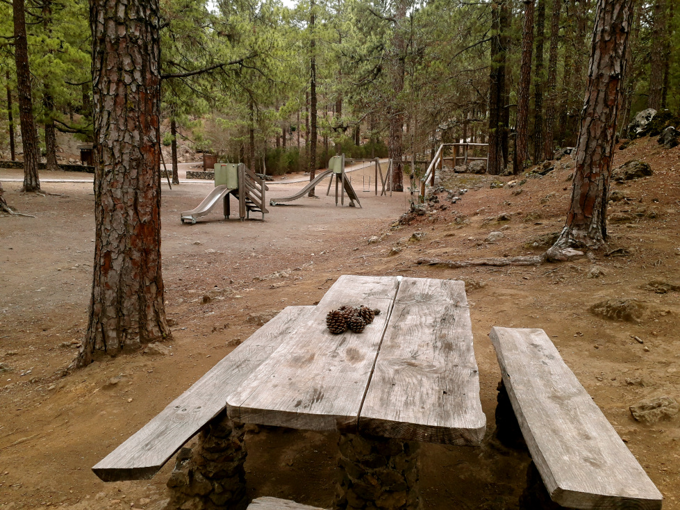 El Lagar ist komplett ausgestattet mit Grillstellen, Tischen, Kinderspielplatz und Toilettenhäuschen. Sogar ein Hundespielplatz ist da. Oberhalb des Picknickplatzes liegt das Gebäude, in dem es früher einmal eine Weinpresse gab, daher der Name El Lagar. Tatsächlich gab es in dieser Gegend, wo heute nur Kiefernwald wächst, einmal Weinbau, der aber auf 1000m Meereshöhe bald nicht mehr wirtschaftlich war. Es ist zu wolkig dort oben, deshalb waren die Weinstöcke nicht sehr ertragreich.