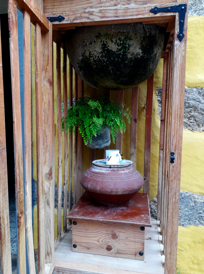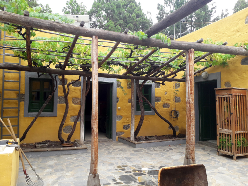 Ein paar kleine Weinstöcke gibt es noch im Innenhof des massiven Gebäudes, das heute nur als Arbeits- und Lagerraum für die Forstarbeiter dient und für die Bevölkerung normalerweise nicht zugänglich ist. Im Hof steht auch noch ein funktionsfähiger Wasserfilter aus Vulkangestein.