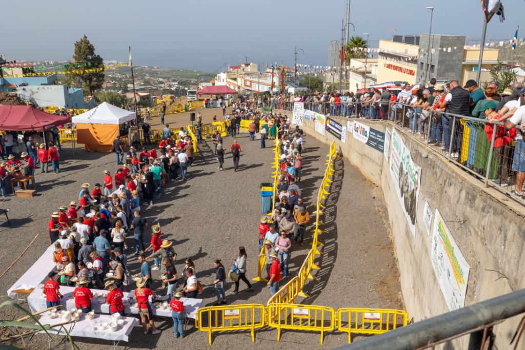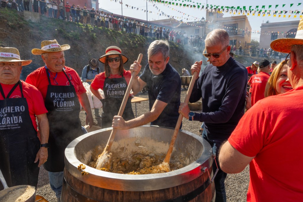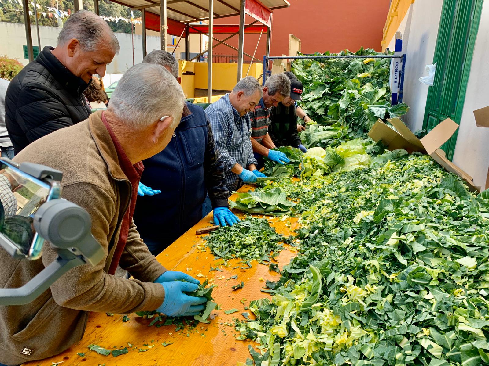 700 Kilo Kürbis und 700 Kilo Chayota, 90 Kilo Bohnen und 90 Kilo Karotten, 20 Kilo Maiskolben, 80 Kilo Kichererbsen, 50 Kilo Lauch und 20 Kilo Knoblauch, hunderte von Kohlköpfen und viele Säcke Zwiebeln und Kartoffeln, 250 Kilo Gofio… Ein paar Schweinerippchen oder Hühner dürfen nicht fehlen. Jedes Jahr werden neue Rekorde gebrochen. Alle Anwohner der Dorfes beteiligen sich. Alle Produkte kommen lokal aus dem Orotava-Tal. Ein Spektakel, das man sich nicht entgehen lassen sollte, immer in der letzten Januarwoche. Es ist auf jeden Fall der größte Puchero der Kanaren.