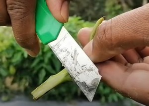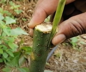 Doch selbst wenn es gelingt, aus einem Kern ein Bäumchen zu ziehen, wird es schwierig, Früchte zu bekommen. In der Natur braucht der Baum 10-15 Jahre, bis er zum ersten Mal Früchte trägt. Deshalb werden die jungen Bäume grundsätzlich veredelt, so kann man die Zeit auf 2-3 Jahre verkürzen. Dazu nimmt man einen neuen Trieb von einem erwachsenen Baum und steckt ihn in den gekappten Stamm des jungen Baums, wenn dieser etwa 1 m groß ist.