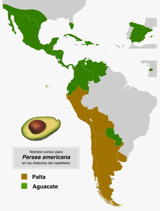 In Spanien heißt die Frucht heute aguacate, ganz ähnlich wie im Original. Im weiten Teilen Südamerikas ist sie aber als palta bekannt, ein Wort, das aus der Quechua-Sprache stammt. In Deutschland war sie zu Anfang auch als Butterfrucht, Butterbirne oder Alligatorbirne bekannt, letzteres wegen der grünen, rauen Schale.