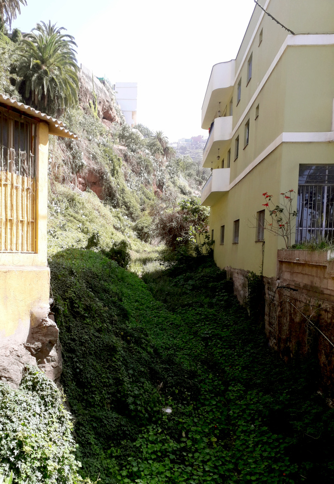 In der Fortsetzung der Schlucht unterhalb der Autobahn kann man bis zu Meer hinunter gehen, sofern der Weg nicht gesperrt ist: Barranco Hondo.