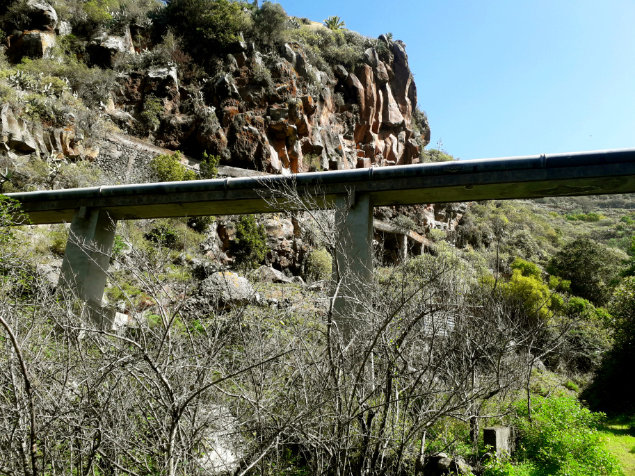 In früheren Zeiten waren diese Schluchten ein bedeutendes Hindernis. Zwischen La Victoria und Santa Úrsula gibt es nur drei Möglichkeiten, sie zu überqueren: Die Autobahnbrücke und zwei weitere auf den Landstraßen, mit vielen Kurven und Umwegen. Zu einem Stau auf der Autobahn gibt es deshalb fast keine Alternative. Eine dieser Brücken ist die Puente de Hierro, oder Puente Alfonso XIII, wie sie offiziell heißt. Sie hat eine ganz besondere Geschichte. Lies hierzu diesen Artikel: Endlich Nachbarn.