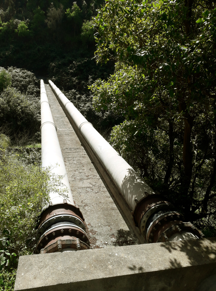 Dieser Kanal ist breit und bequem zu gehen. Dort kommt man nach ca. 150m zu einer Kanalbrücke mit Rohren und klettert kurz an einem Felsbrocken vorbei. Die nächste Kanalbrücke darf man nicht überqueren, sondern man geht 20 m geradeaus weiter und dann scharf nach rechts und unter der Brücke durch.