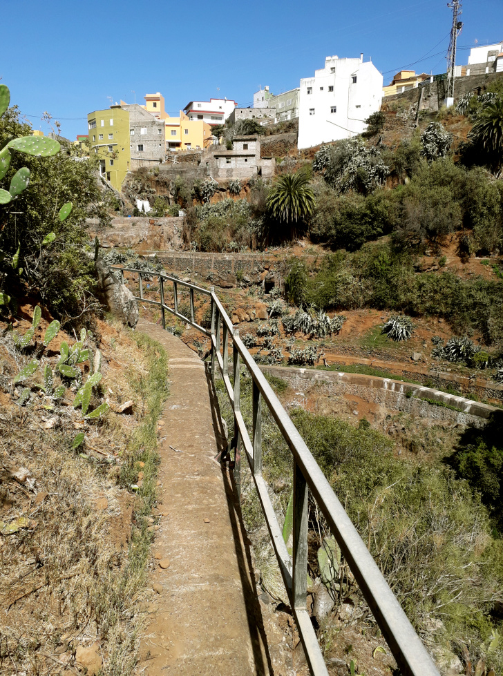 Bemerkung: Die Wege in den Barrancos sind steinig, aber nicht steil. Auf dem Rückweg, beim Abstieg durch die Gärten, sind ein paar steile Treppen zu überwinden. Wanderstiefel sind empfehlenswert.
