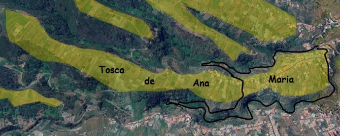 Diese Flächen zwischen den Barrancos heißen hier Toscas, was eigentlich Kalkstein bedeutet, aber es steht für in früheren Zeiten ungenutztes Brachland. Verschiedene Familien haben sich dort angesiedelt, Terrassen für den Anbau angelegt und die Wasservorkommen in den Schluchten genutzt, so z.B. im Barranco de Los Sauces. So haben die Dörfer auch die Namen der Siedler bekommen, Tosca de Ana Maria, Tosca José Barrios oder Tosca La Iglesia. Doch wer von einem Dorf zum nächsten will, muss weit hinunter fahren, um die Schlucht zu überqueren.