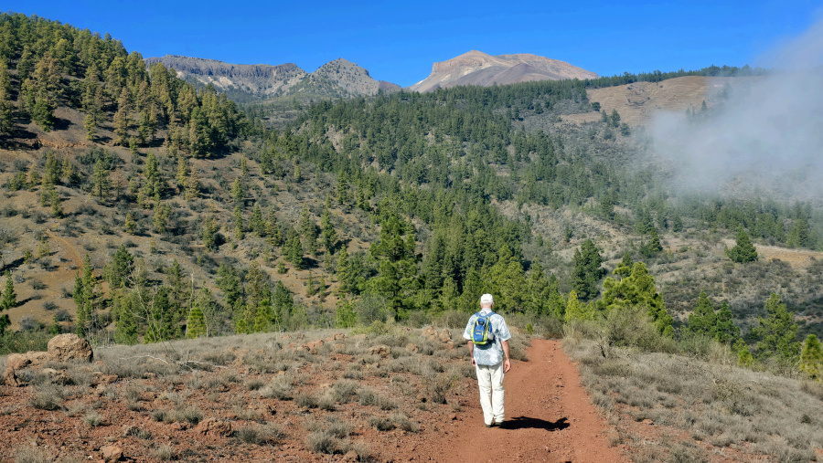 Die Berglandschaften oberhalb von Granadilla de Abona sind ein wenig bekanntes Wandergebiet. Wo die allerletzten Terrassenfelder mit Wein- und Obstbau enden, beginnt eine noch nicht so steile Zone mit Wald und stillen Tälern. Die 1400 m hohe Montaña Colorada ist ein perfekter Aussichtsberg mit Blick nach oben, zu den Gebirgsketten, und in die Täler von Granadilla und Vilaflor.