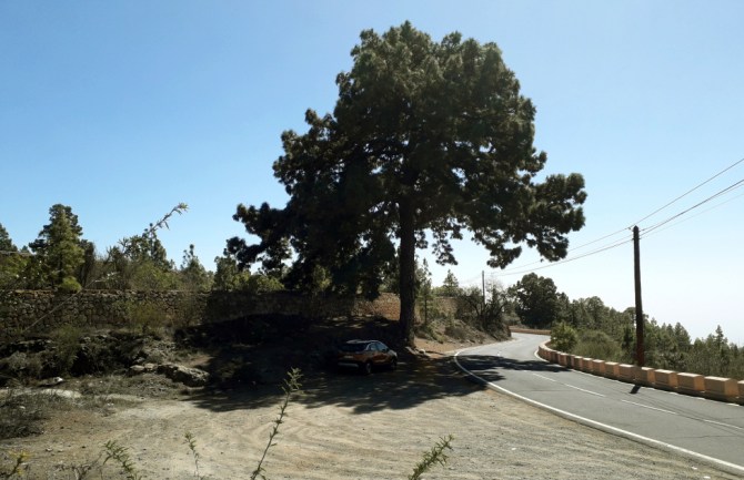 Auf der TF-21 von Vilaflor bis km 71,7. Dort ist unter einer großen Kiefer ein breiter, freier Platz.