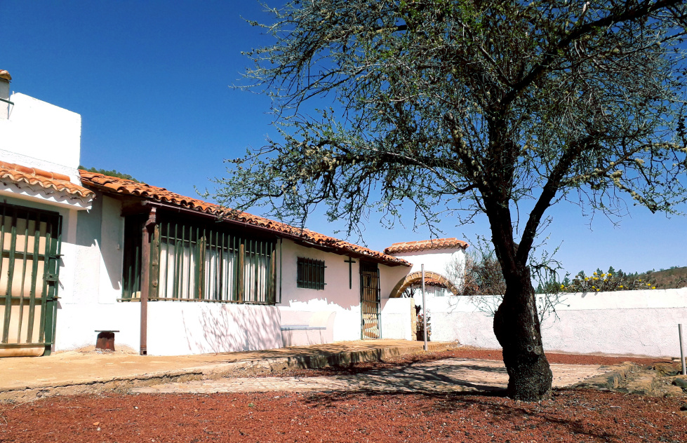 Oben kommt man zu einer weiteren Häusergruppen und findet geradeaus weiter einen schönen Dreschplatz. Auch hier oben gab es früher einmal Getreideanbau. Nach dem Dreschplatz beginnt ein wunderschöner ebener Pfad am Hang entlang, immer mit Blick auf die rote Montaña Colorada.