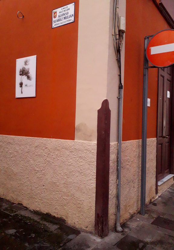Ganz in der Nähe gibt es einen weiteren Eckpfeiler, in Richtung Cruz del Teide, an der Nummer 31 der gleichen Straße Salazar, an der Ecke mit der Calle Claudio. Er ist viel kleiner und ebenfalls einfach, aber noch gut erhalten.