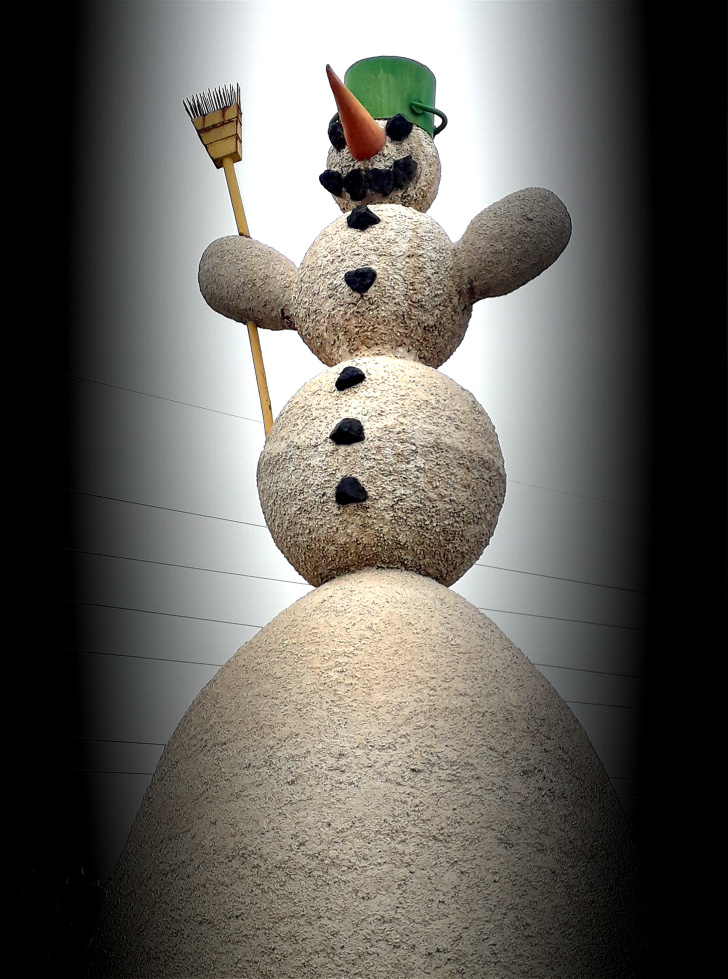 Man hat sich an den Schneemann gewöhnt und er wird dort bleiben, ob er nun gefällt oder nicht. Und der Schneemann selbst übersteht alle Widrigkeiten. Sommerhitze und heiße Kommentare können ihm nichts anhaben.