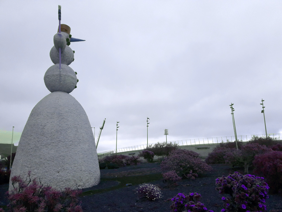 Warum er ausgerechnet einen Schneemann in den Kreisverkehr stellte, weiß wahrscheinlich nur er selbst. Aber den Schneemann von Teneriffa kennt inzwischen jeder. Meistens fährt man auf der Autobahn unten durch und wer zum ersten Mal dort lang fährt, reibt sich verwundert sie Augen. Was will denn der Schneemann hier? Am Kreisverkehr selbst gibt es nicht wirklich etwas zu sehen.