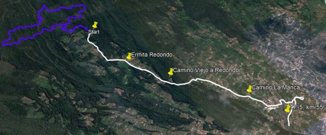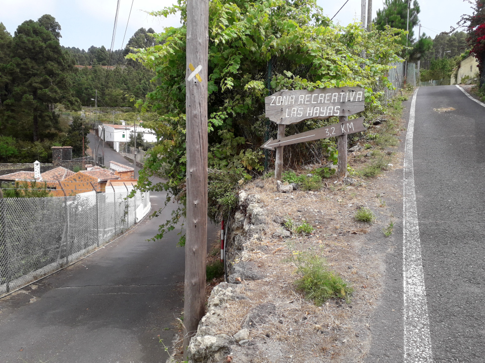 Die Straße trifft nach 1,1km auf den Camino Viejo a Redondo, nach 1,3km kommt man an der Ermita Redondo vorbei, kurz danach ist Las Hayas ausgeschildert. Nach weiteren 1,1km ist man am Startpunkt der Wanderung.
