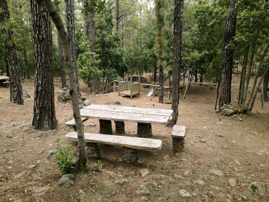 Danach geht es auf der Piste weiter bis zum Picknickplatz Las Hayas (die Buchen). Im Wald verstreut liegen Tisch, Grillstellen und ein Kinderspielplatz. Am Wochenende könnte hier durchaus etwas Betrieb sein. Viele Familien fahren mit den Auto bis hier her.