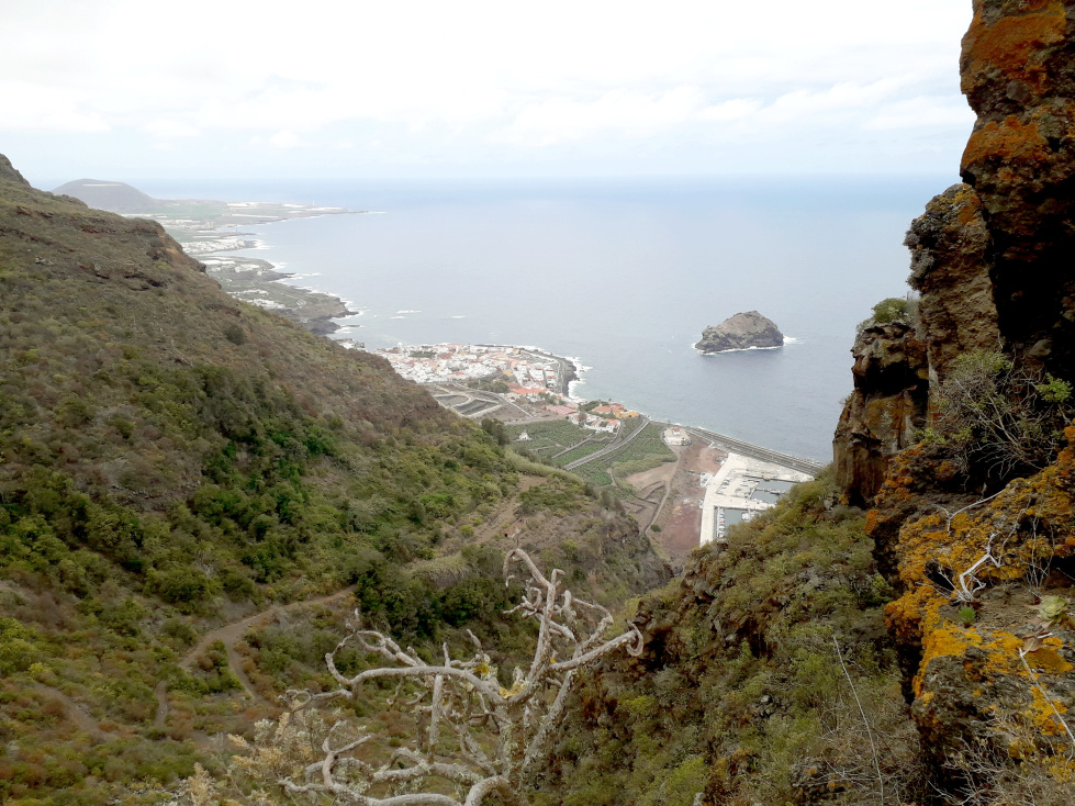 Vom Platz vor dem Brunnen kann man die Aussicht bewundern hinunter nach Garachico mit seinem Hafen. Es gibt aber keinen Weg dort bis zur Küste hinunter.