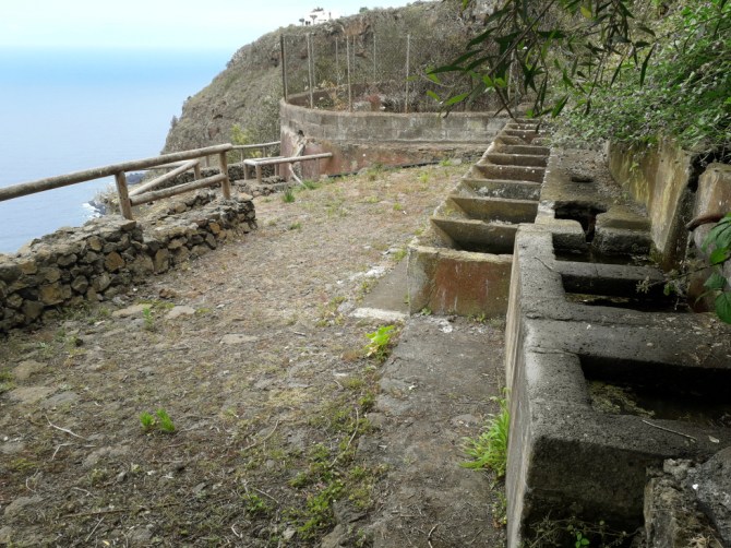 Hier kommt niemand zufällig vorbei. Kein Schild weist den Weg, und kein Reiseführer. Die Quellen „Las Viñitas“ liegen so versteckt, dass nur noch die Alten im Dorf wissen, wo sie sind. Wie so oft auf der Insel, liegen die Wasserquellen an steilen und schlecht zugänglichen Felswänden. Oft hat man besondere Wege dorthin angelegt, und oft mussten die Frauen diese Wege täglich gehen. Wasser holen für das Haus, die Wäsche hinunter zum Brunnen tragen und die gewaschene und feuchte Wäsche wieder hinauf.