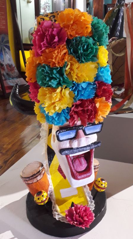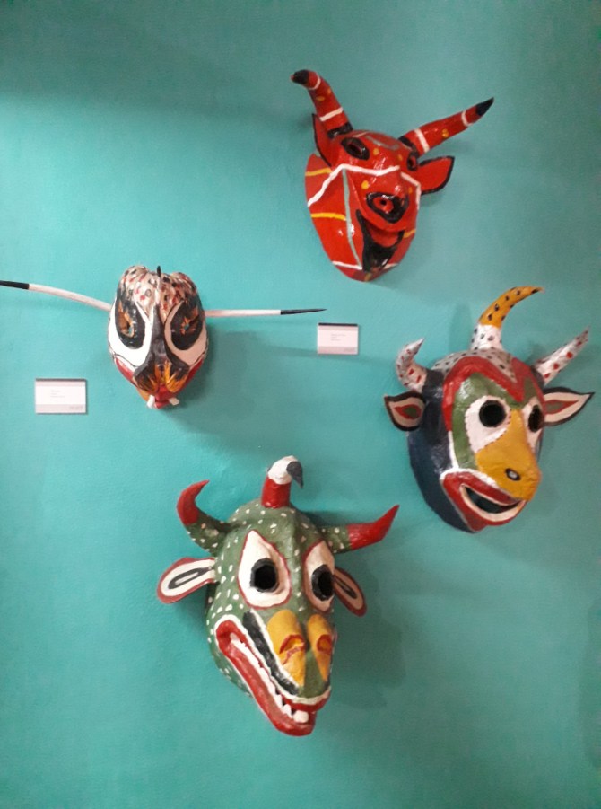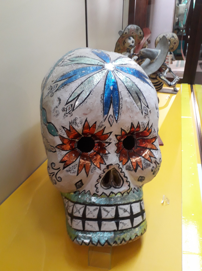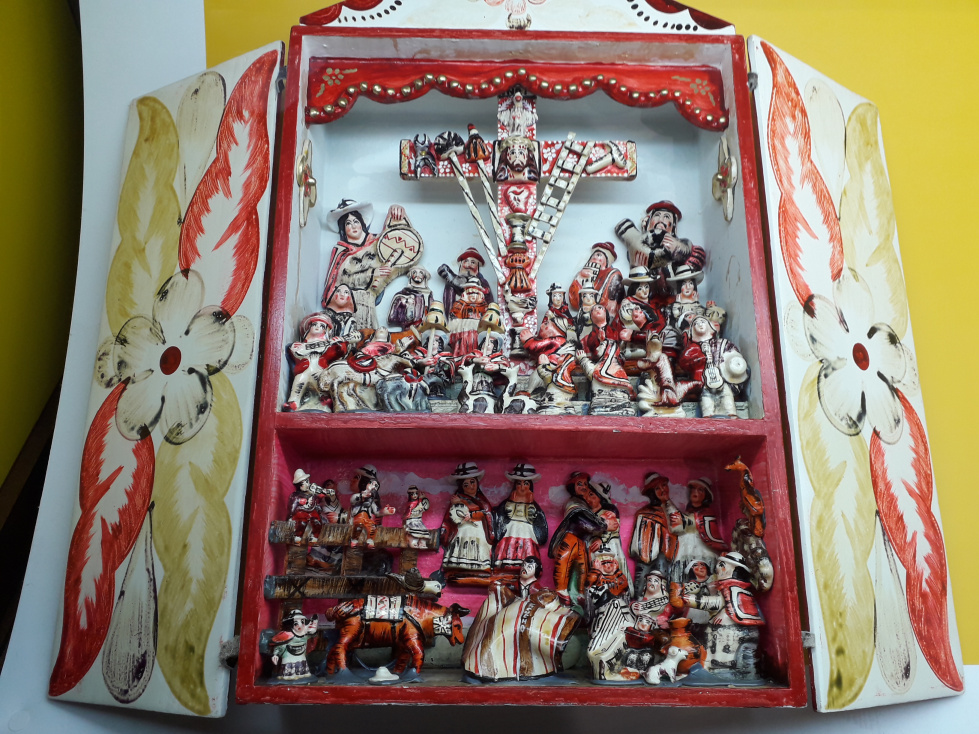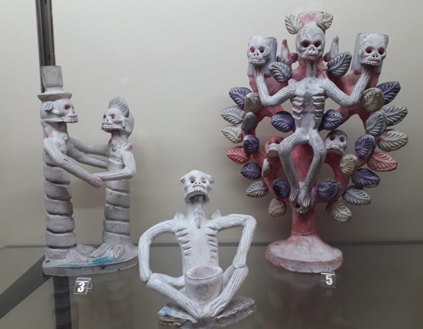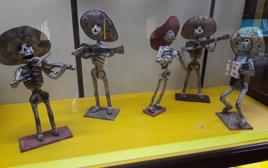 Besonders bunt und schrill geht es im Saal mit der populären Kunst aus Amerika und den Philippinen zu. Die Krippe mit Keramikfiguren aus Cuzco, Perú, Skelette als Musikgruppe oder Totenschädel aus Mexiko. Man kommt aus dem Staunen nicht mehr heraus über die einzigartigen Schätze aus fremden Welten.