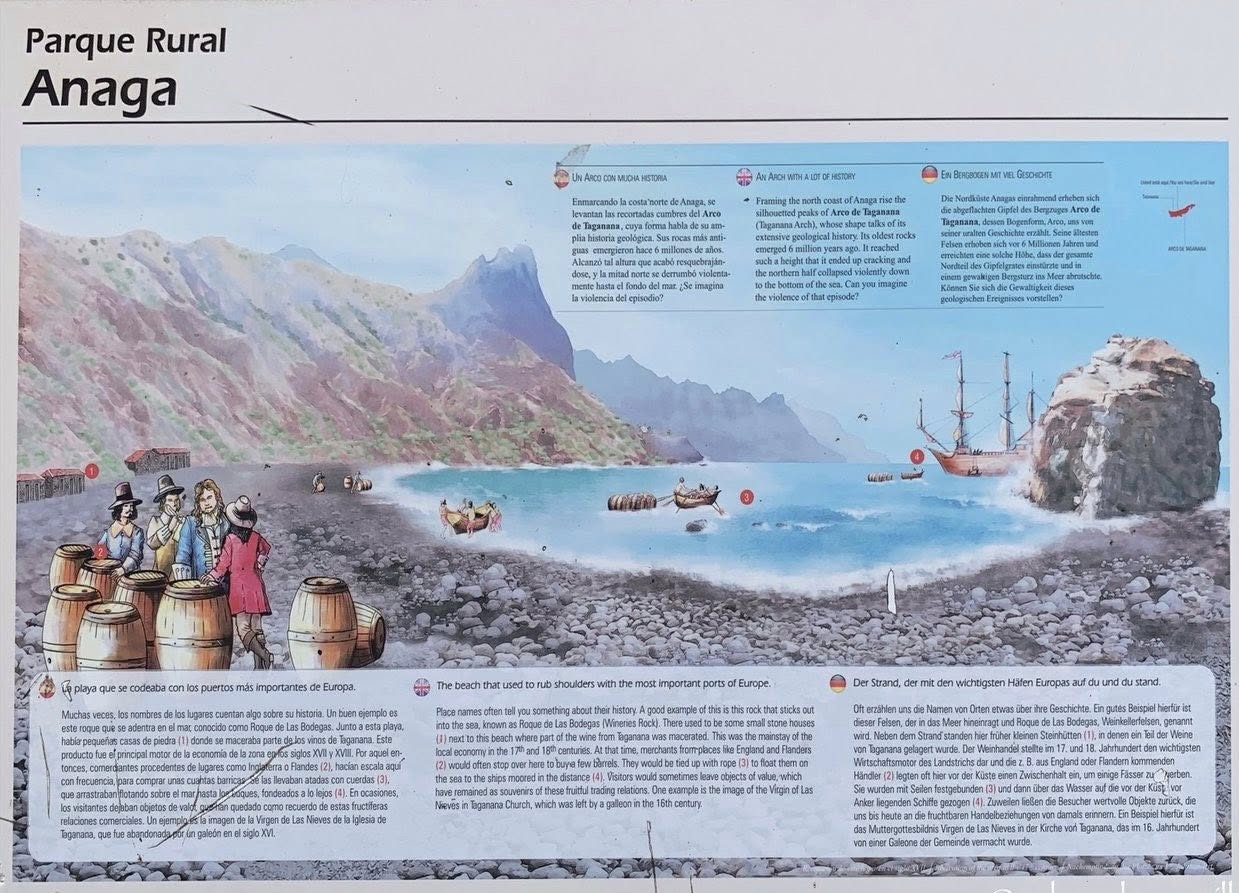 Nicht nur am Roque de las Bodegas, am Weinkellerfelsen, sondern auch hier an diesem steinigen Strand, wurde im 17. und 18. Jahrhundert einmal das wichtigste Exportprodukt von Taganana verladen, der Wein. Die Schiffe aus England oder Flandern konnten nicht an der Küste anlegen, sondern die Fässer wurden mit Seilen zusammengebunden und mit Ruderbooten zum Schiff transportiert.