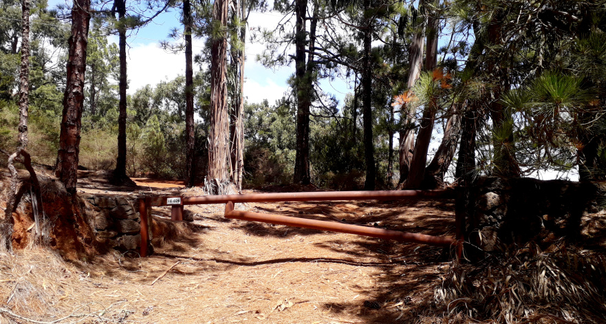 Dieser beginnt direkt an der TF-24. In der ersten Linkskurve, von Las Rosas kommend, gibt es Parkmöglichkeiten. Man geht 120m auf der Straße nach oben (Vorsicht, Kurve!) und findet genau gegenüber der Villa Los Berros einen Waldweg mit Schranke. Dieser führt zum Wasserdepot von Los Berros hinauf.