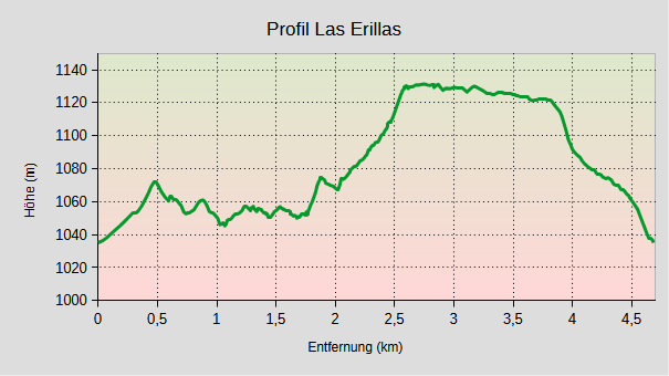 Höchster Punkt: 1130 m, tiefster Punkt 1035 m
