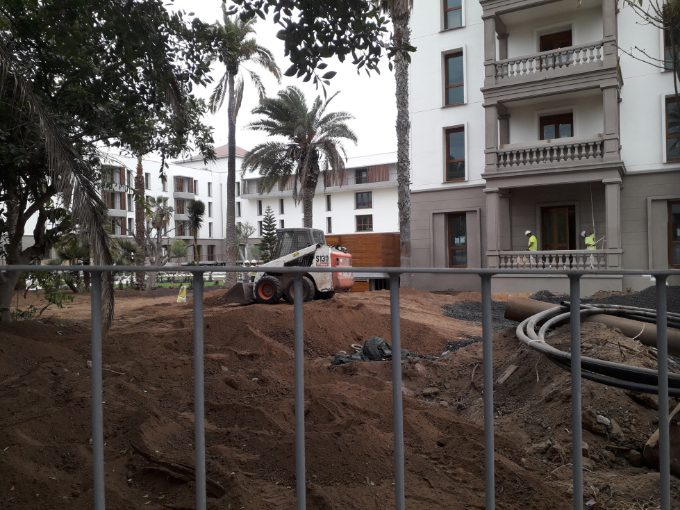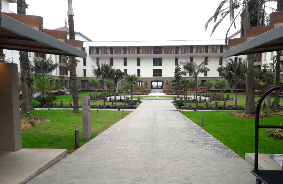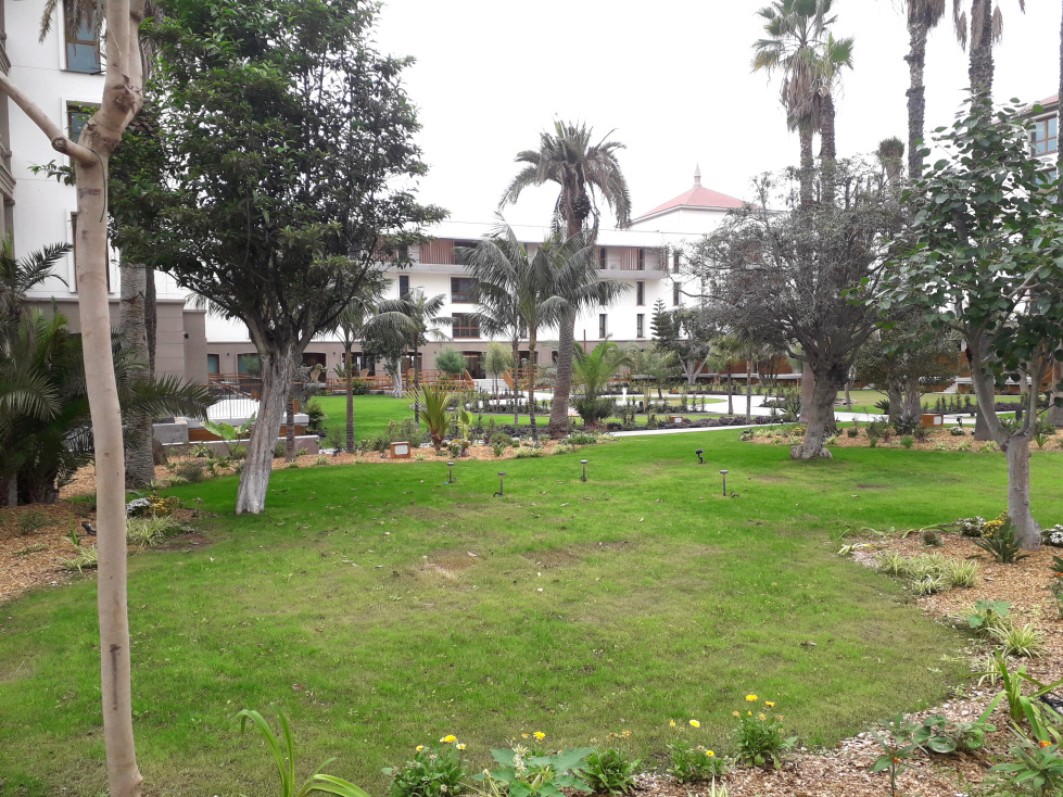 Im September war rund um das Hotel noch rege Bautätigkeit zu sehen. Aber bis zur Eröffnung wurden die Gartenanlagen hübsch hergerichtet. Nur auf der Rückseite gab es noch einige hässliche Ecken.